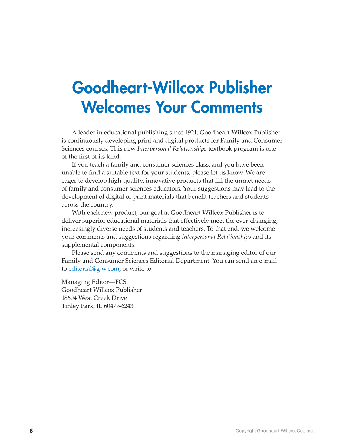 With each new product, our goal at Goodheart-Willcox Publisher is to