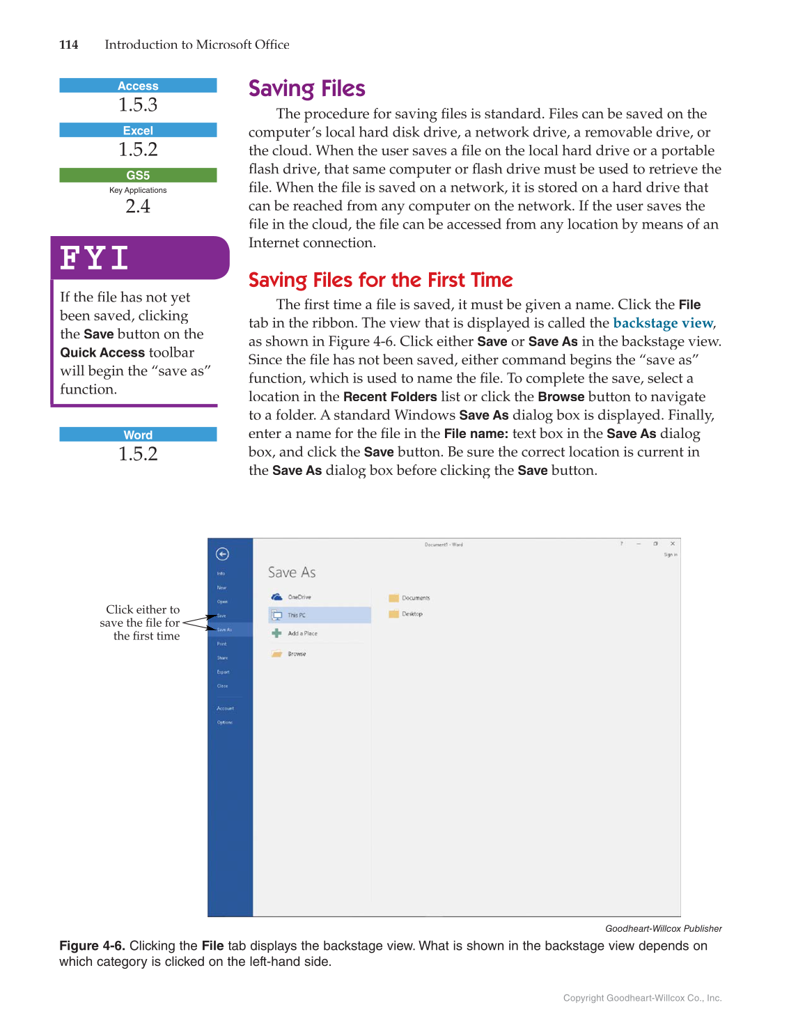 Figure 4-6. Clicking the File tab displays the backstage view. What is shown in the backstage view depends on