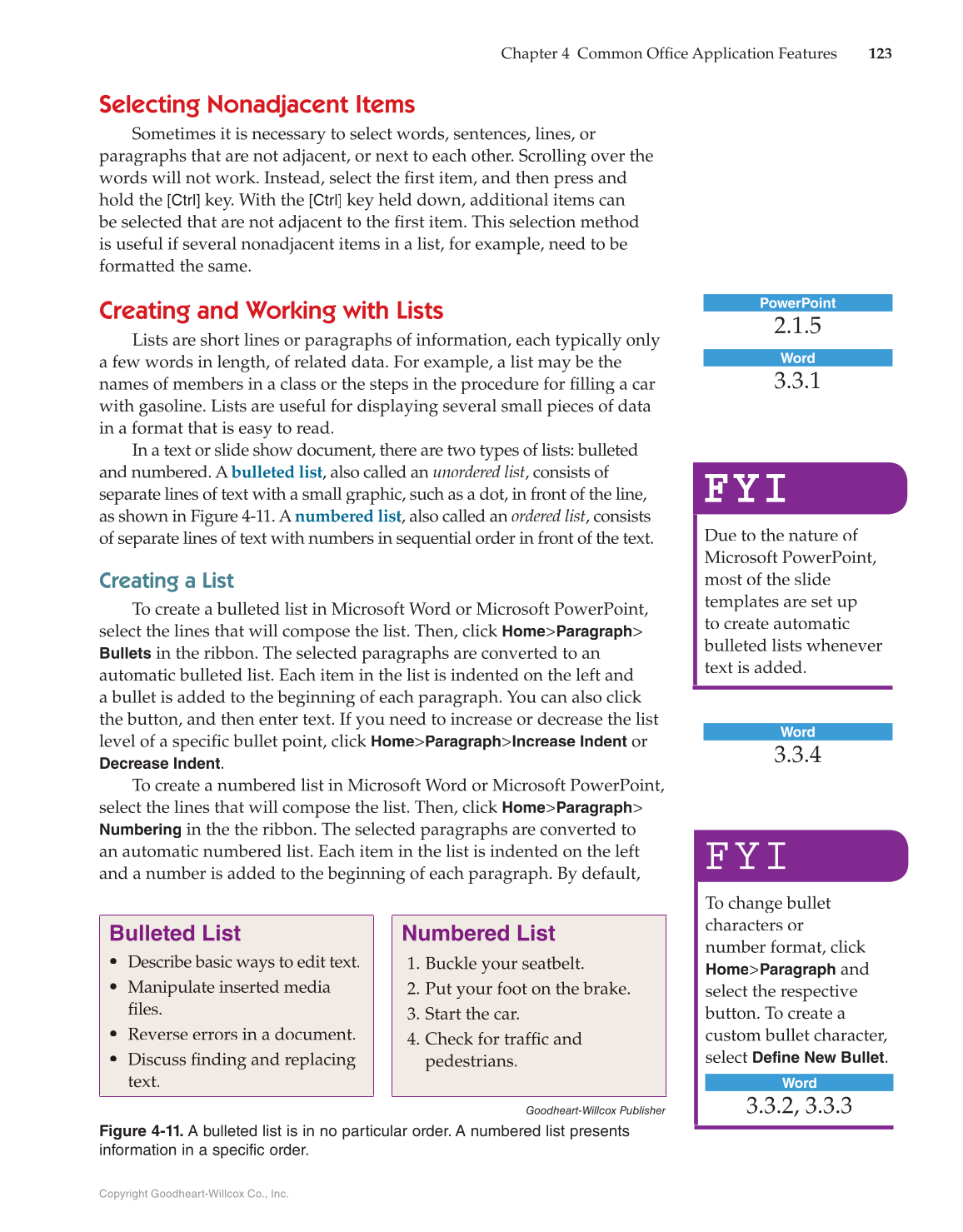Figure 4-11. A bulleted list is in no particular order. A numbered list presents
