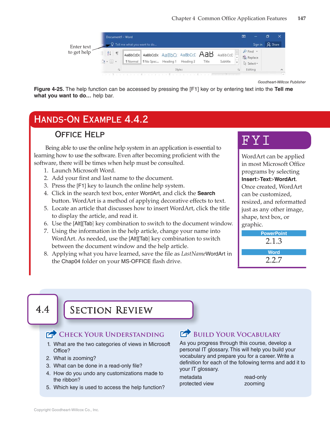 Figure 4-25. The help function can be accessed by pressing the [F1] key or by entering text into the Tell me