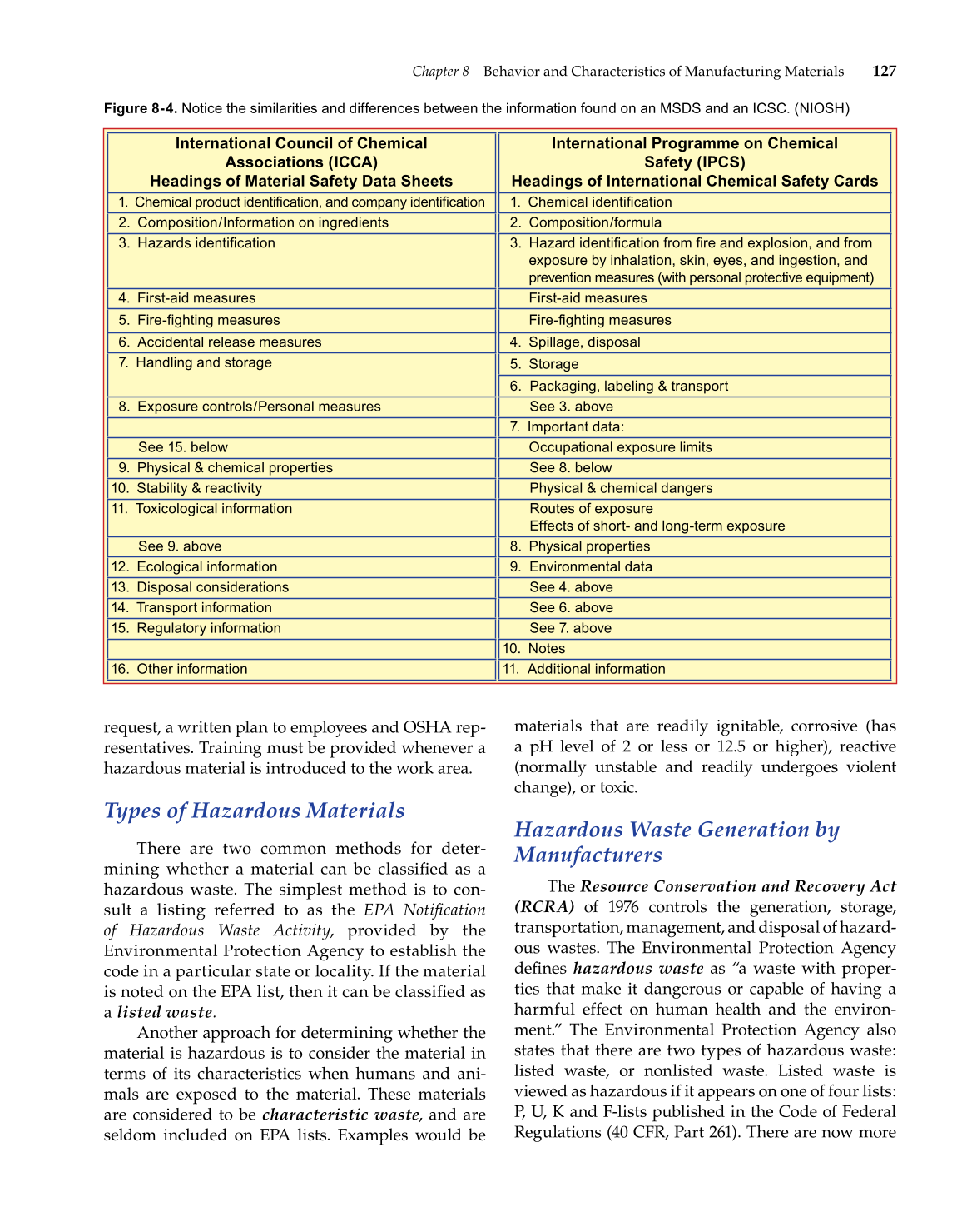 Figure 8-4. Notice the similarities and differences between the information found on an MSDS and an ICSC. (NIOSH)