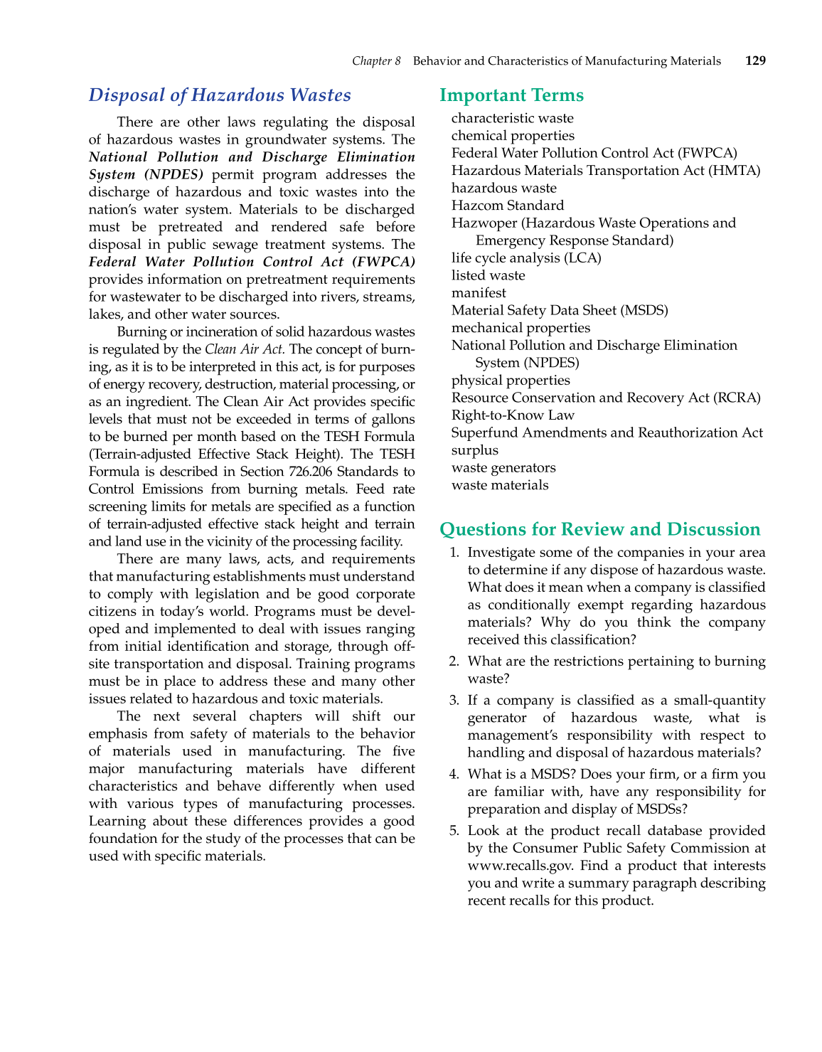 Chapter 8 Behavior and Characteristics of Manufacturing Materials 129
