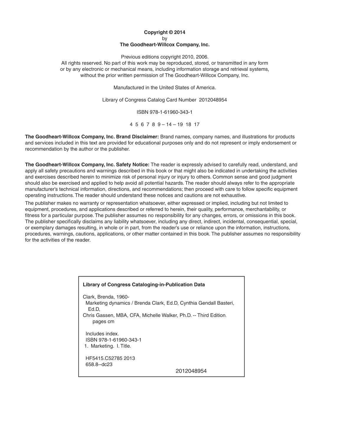 The Goodheart-Willcox Company, Inc. Safety Notice: The reader is expressly advised to carefully read, understand, and