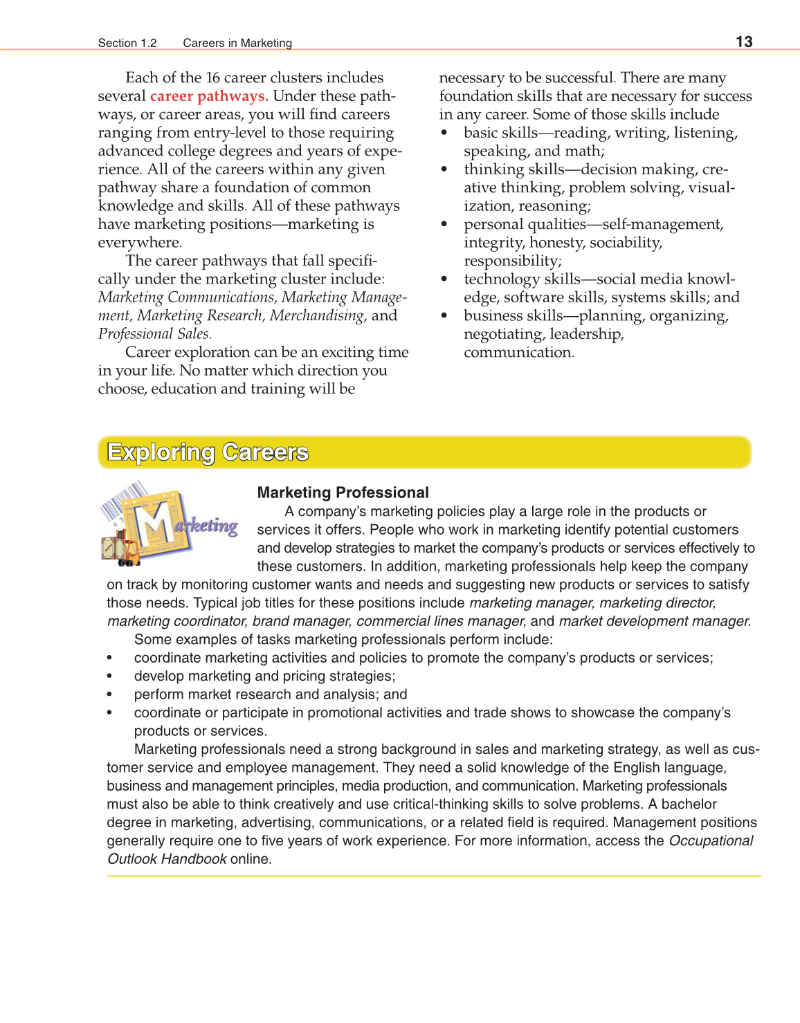 Section 1.2 Careers in Marketing