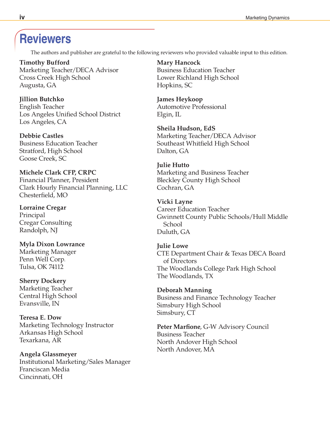 The authors and publisher are grateful to the following reviewers who provided valuable input to this edition.