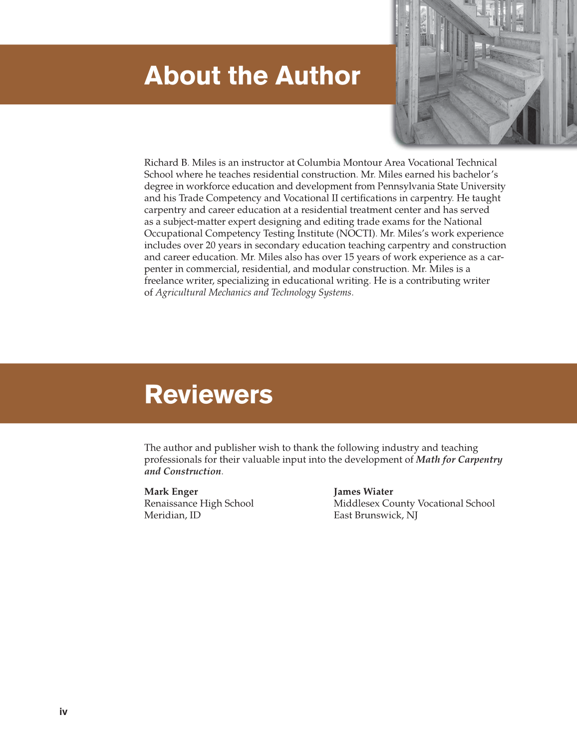School where he teaches residential construction. Mr. Miles earned his bachelor’s