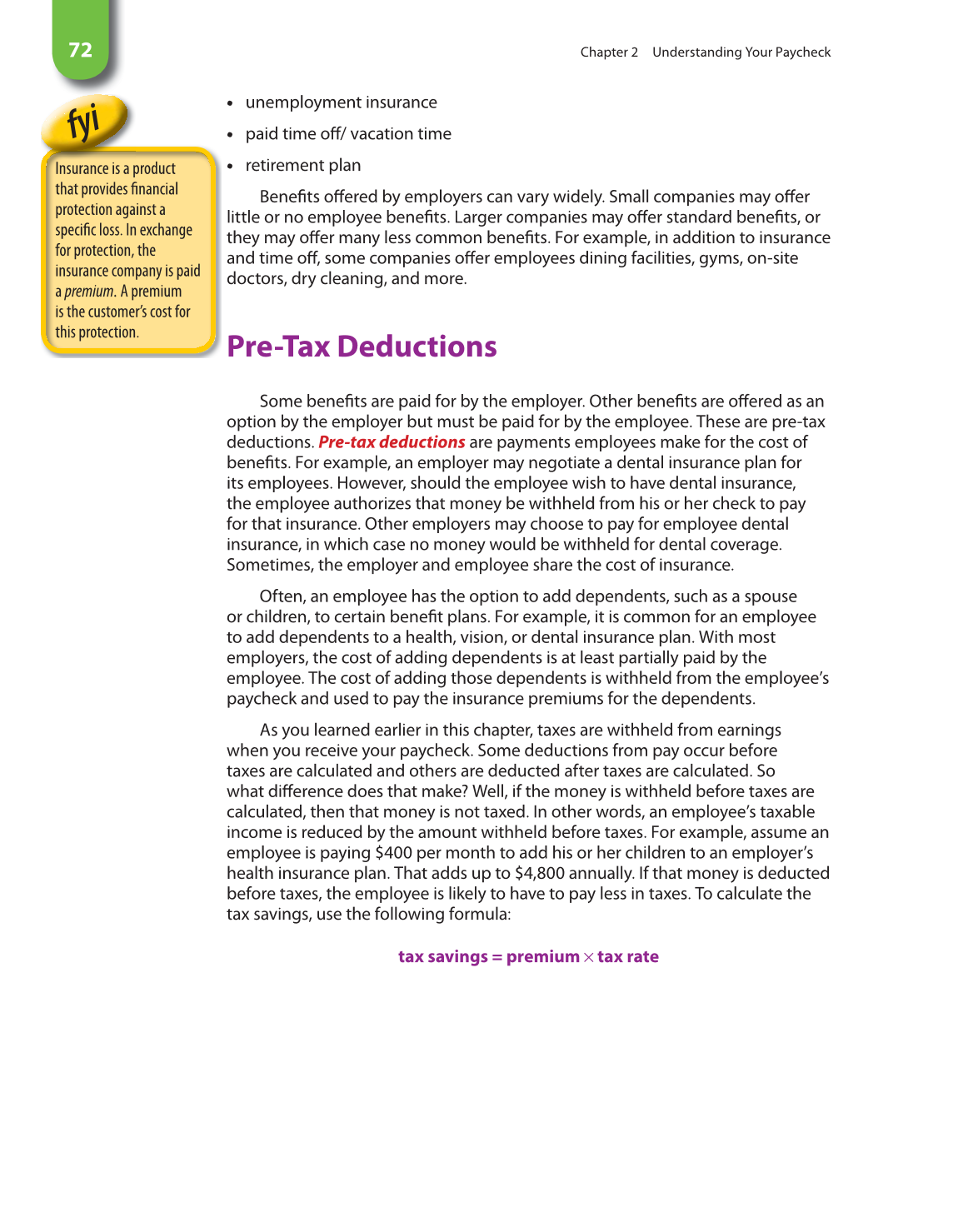 Some benefi ts are paid for by the employer. Other benefi ts are off ered as an