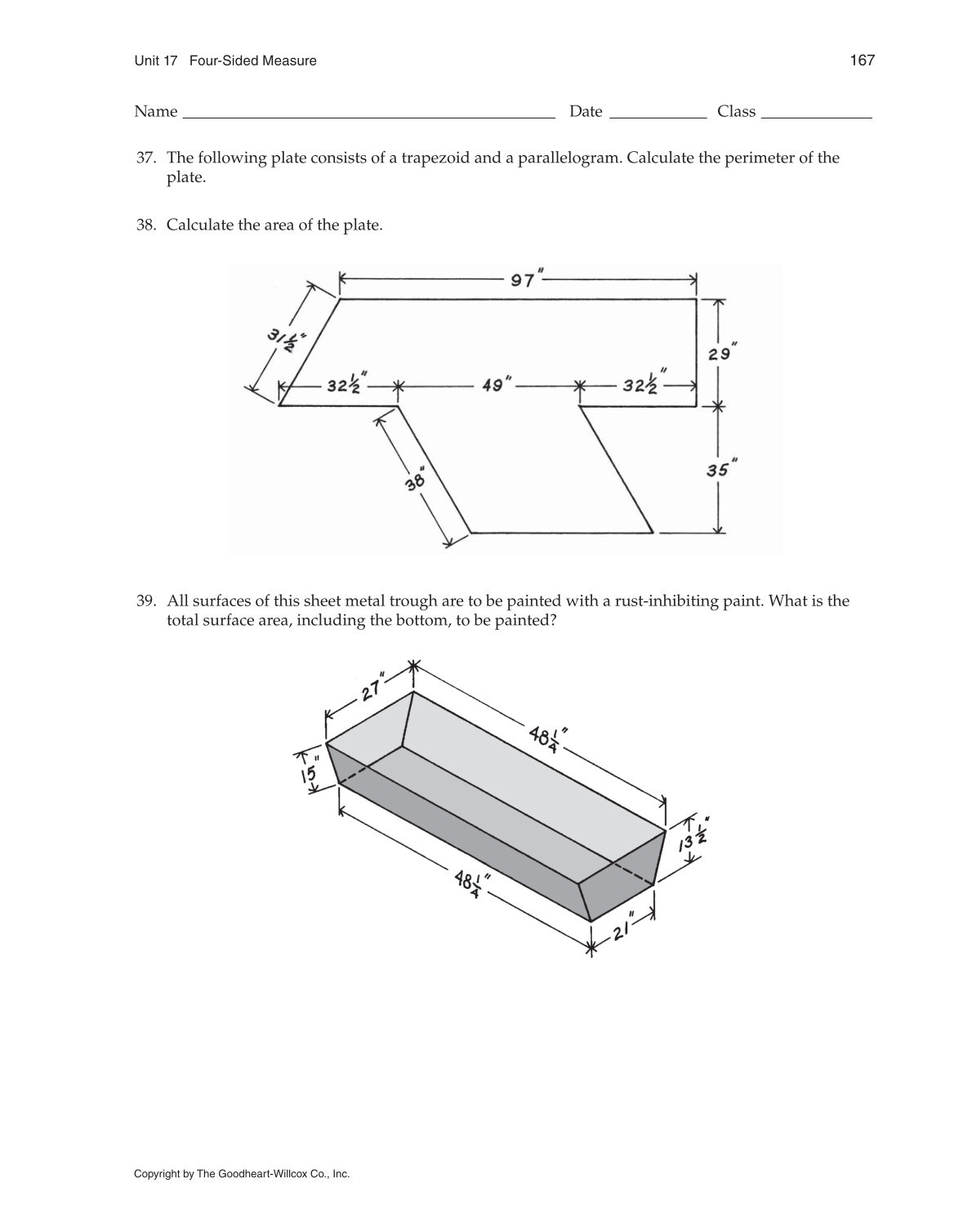 39. All surfaces of this sheet metal trough are to be painted with a rust-inhibiting paint. What is the