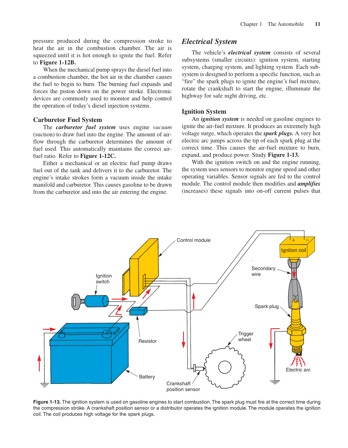 Figure 1-13. The ignition system is used on gasoline engines to start combustion.The spark plug must fire at the correct time during