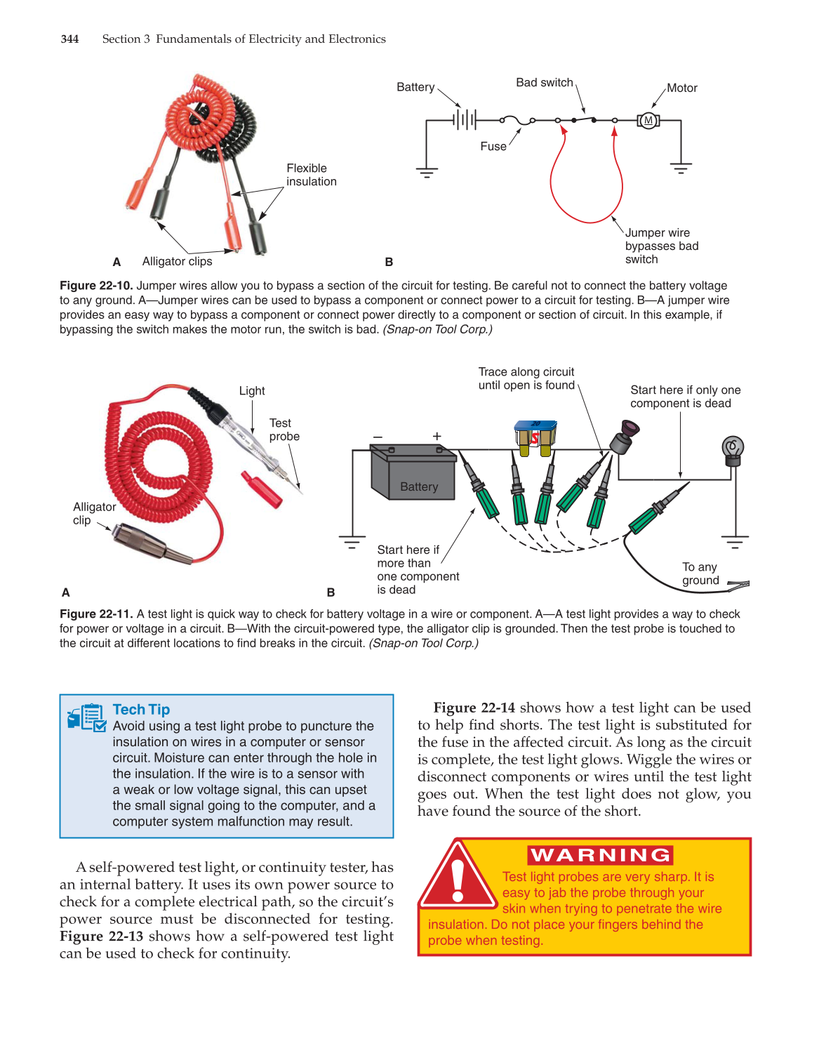 the circuit at different locations to fi nd breaks in the circuit. (Snap-on Tool Corp.)