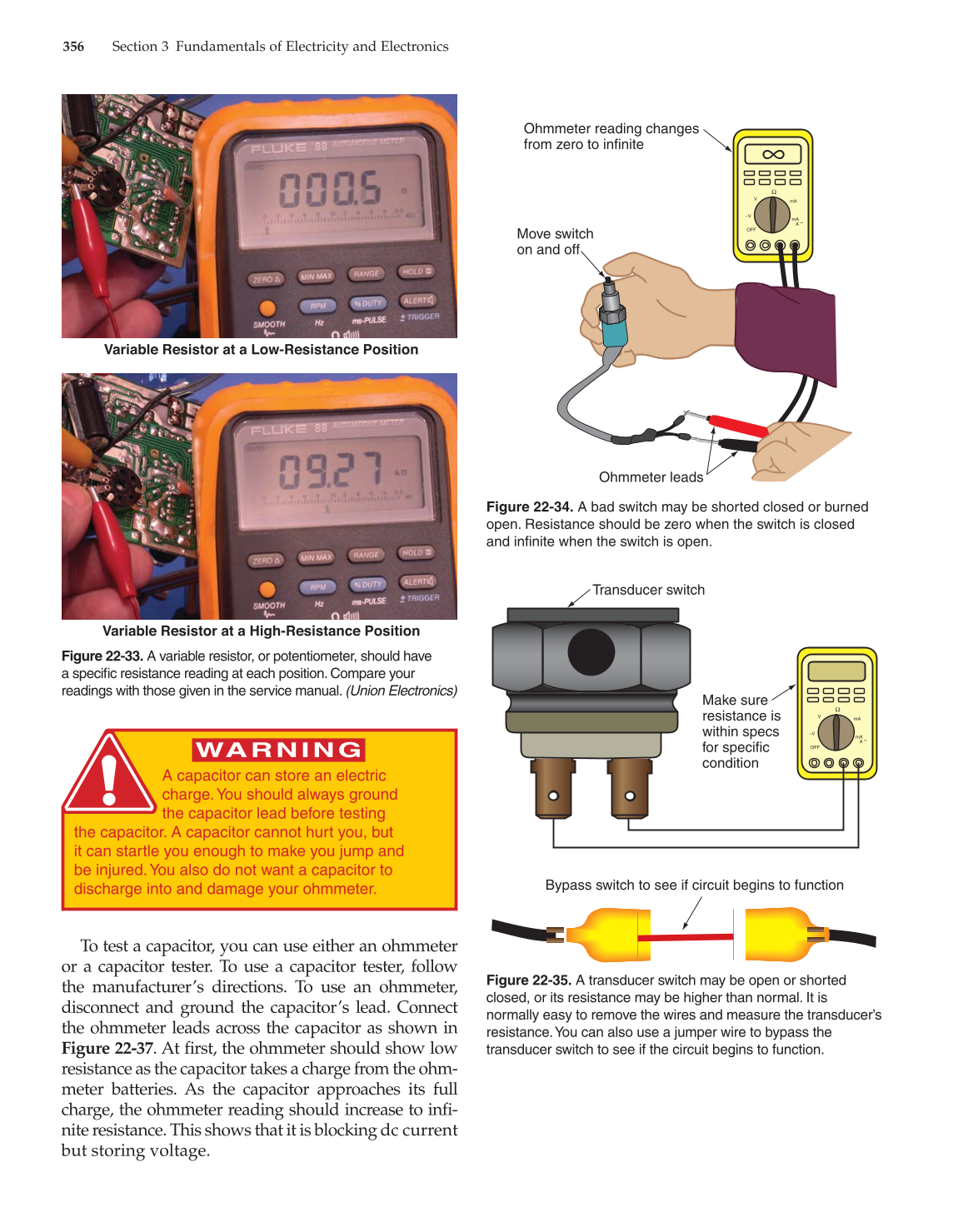 Figure 22-37. At fi rst, the ohmmeter should show low