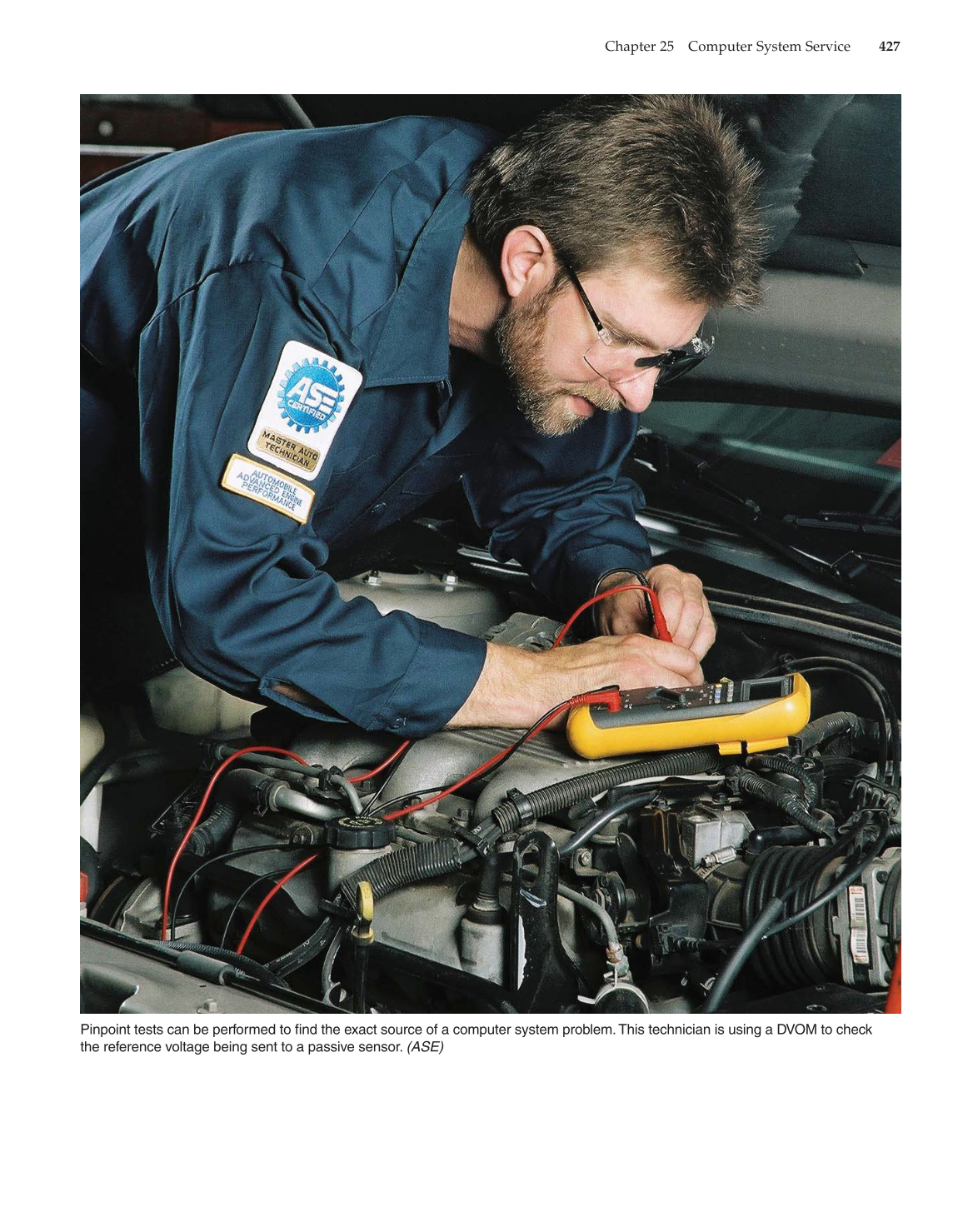 Pinpoint tests can be performed to fi nd the exact source of a computer system problem. This technician is using a DVOM to check