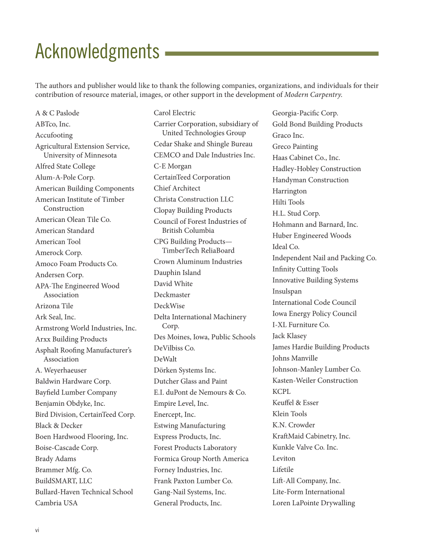 contribution of resource material, images, or other support in the development of Modern Carpentry.