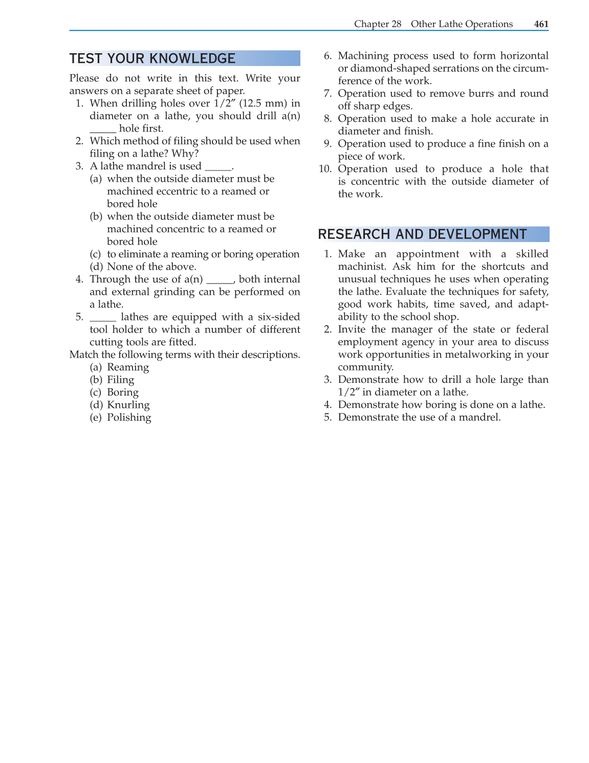 Chapter 28 Other Lathe Operations 461