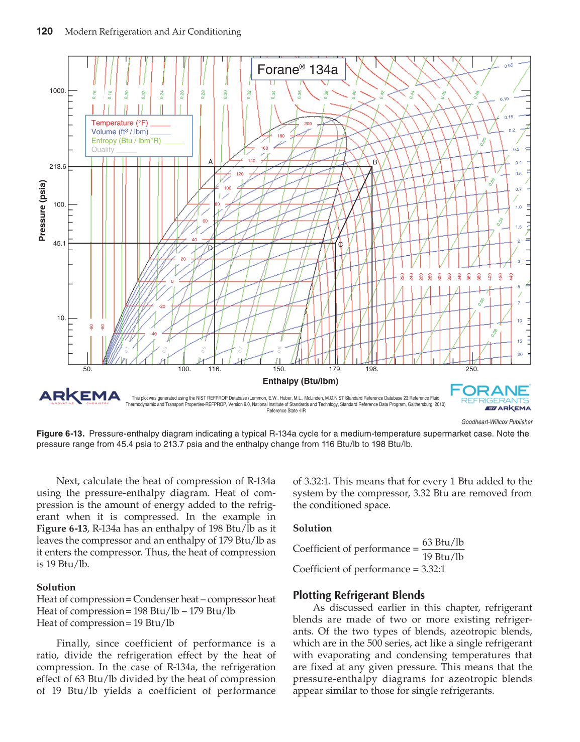 using the pressure-enthalpy diagram. Heat of com-
