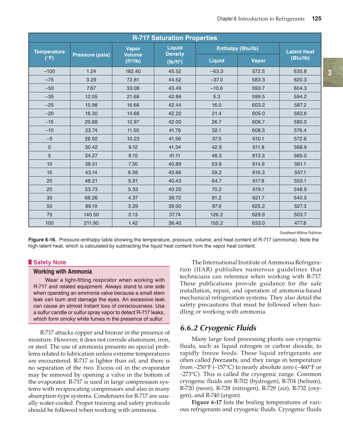 Figure 6-16. Pressure-enthalpy table showing the temperature, pressure, volume, and heat content of R-717 (ammonia). Note the