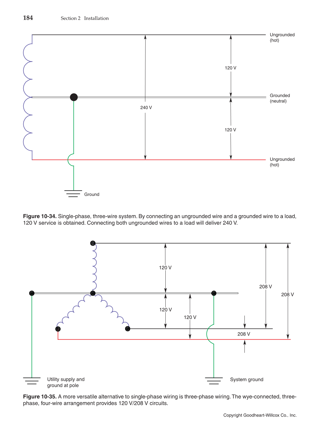 Figure 10-35. A more versatile alternative to single-phase wiring is three-phase wiring. The wye-connected, three-