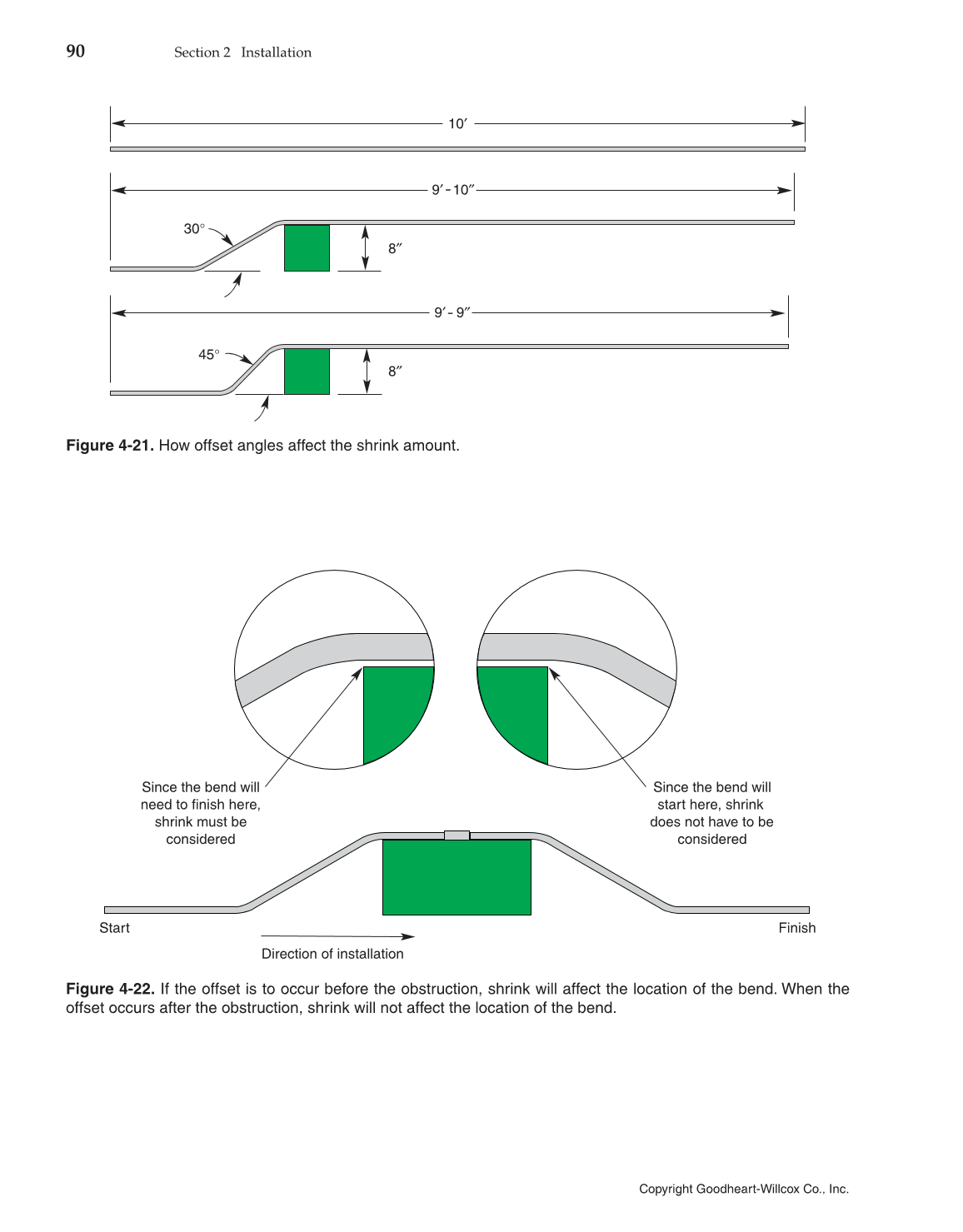 Figure 4-22. If the offset is to occur before the obstruction, shrink will affect the location of the bend. When the