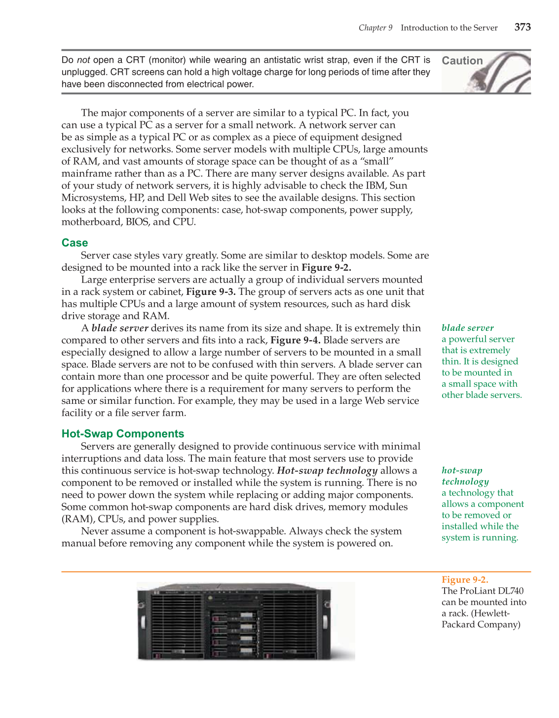 compared to other servers and fi ts into a rack, Figure 9-4. Blade servers are