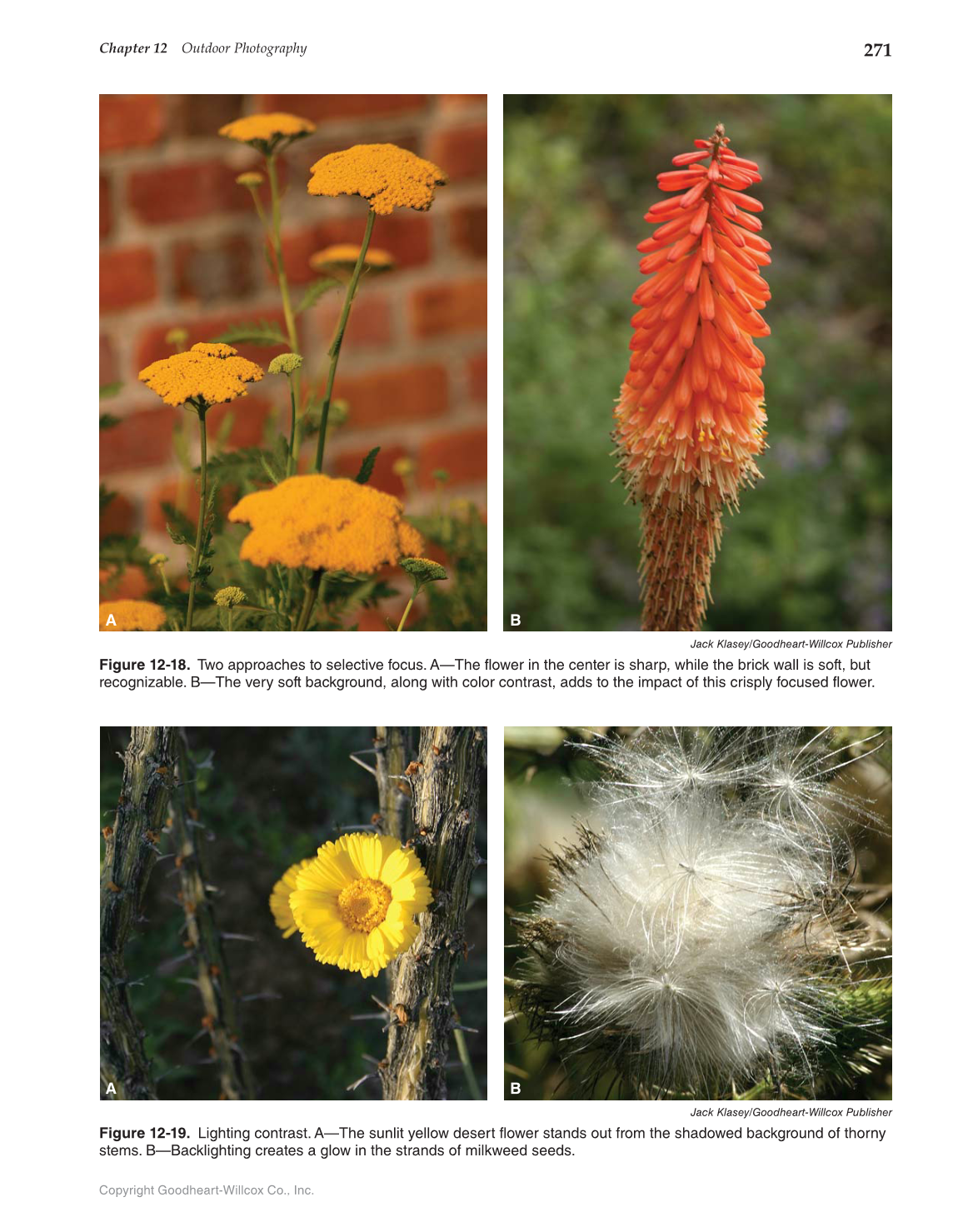 Figure 12-19. Lighting contrast. A—The sunlit yellow desert flower stands out from the shadowed background of thorny
