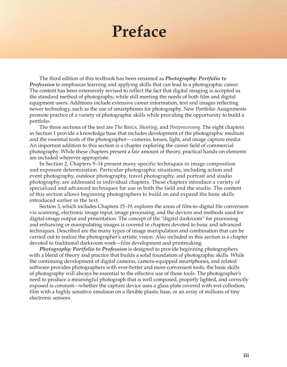The third edition of this textbook has been renamed as Photography: Portfolio to