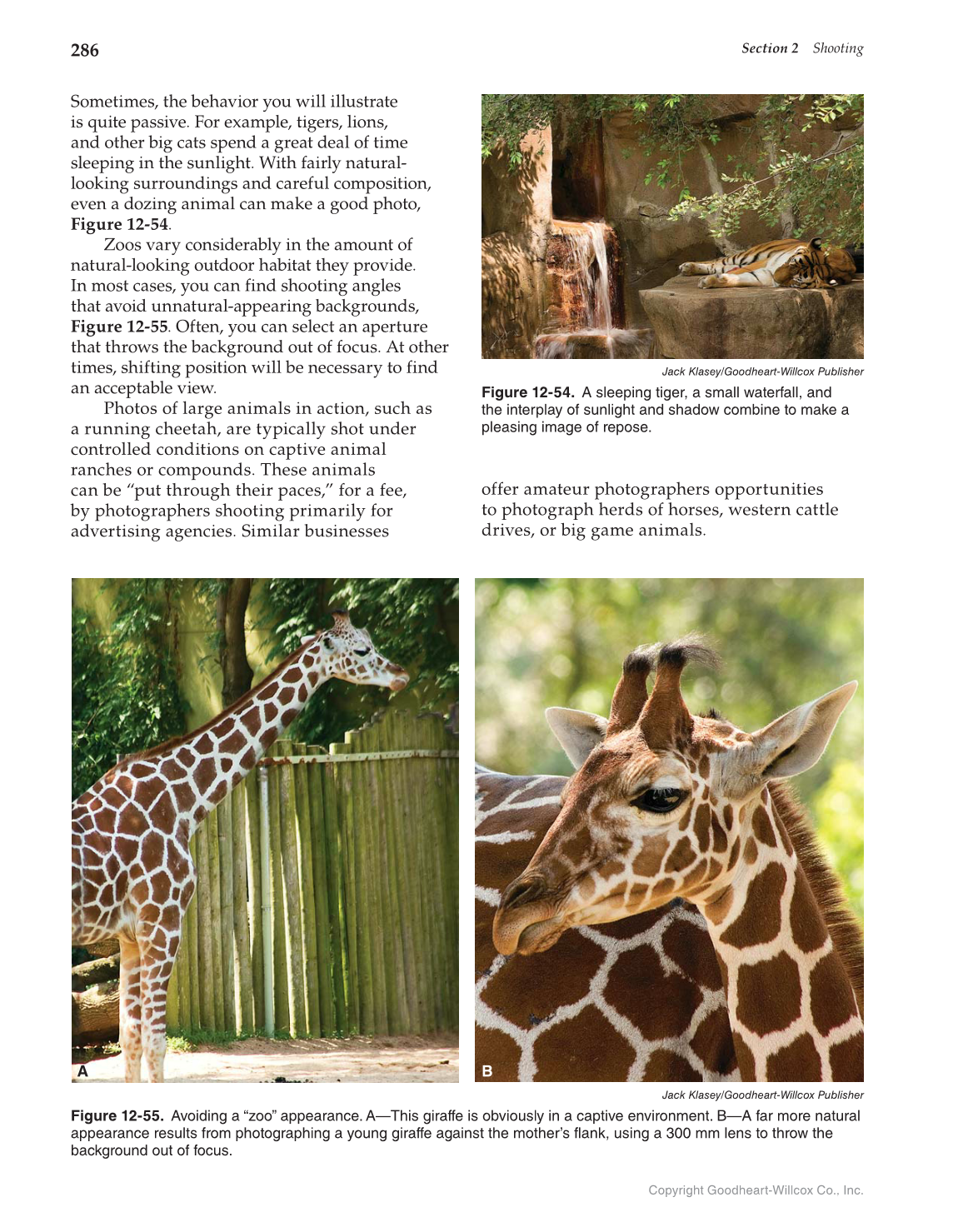 Figure 12-55. Avoiding a “zoo” appearance. A—This giraffe is obviously in a captive environment. B—A far more natural