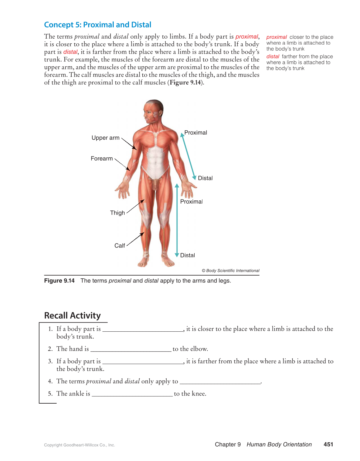 Figure 9.14 The terms proximal and l distal apply to the arms and legs. l