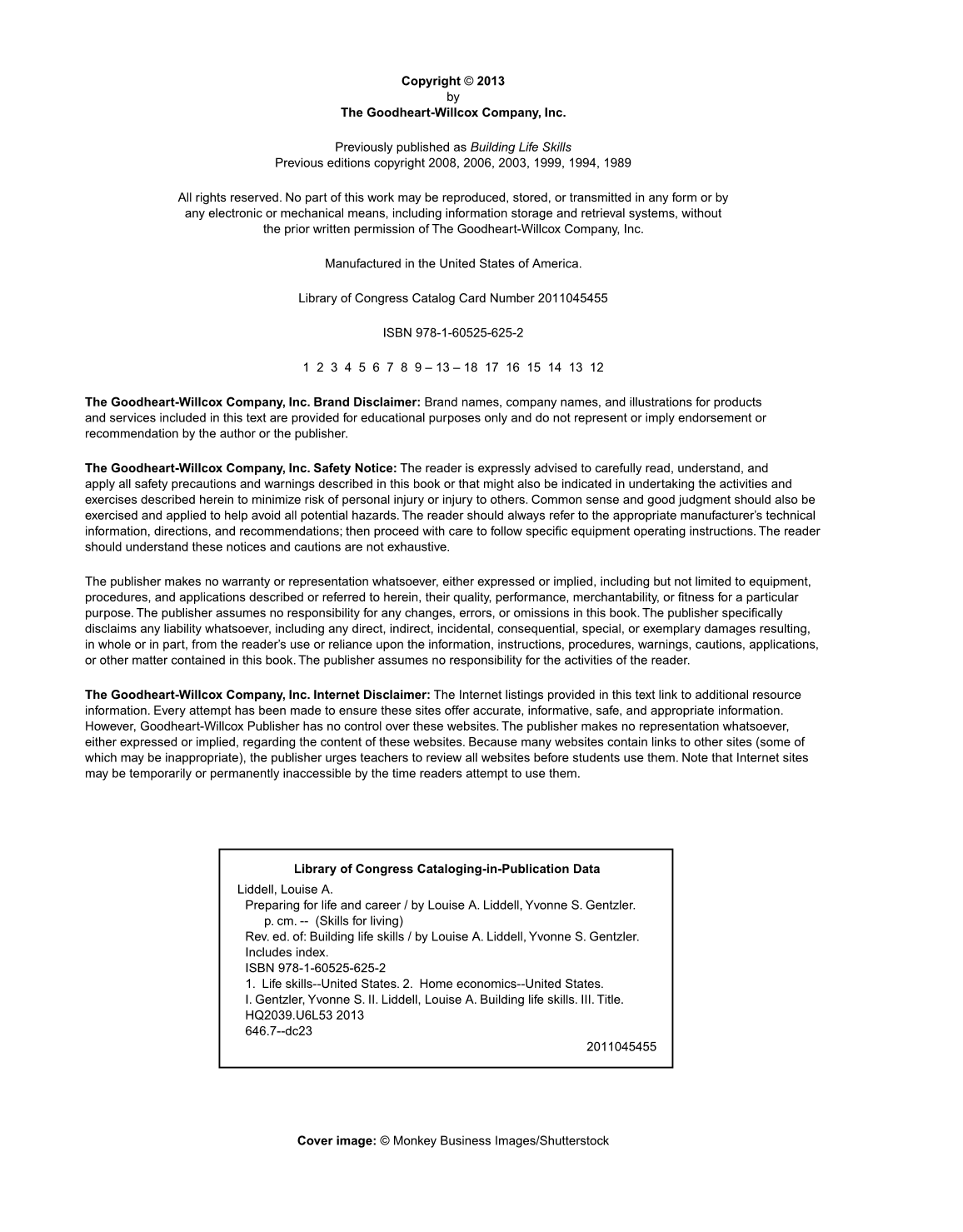 The Goodheart-Willcox Company, Inc. Internet Disclaimer: The Internet listings provided in this text link to additional resource