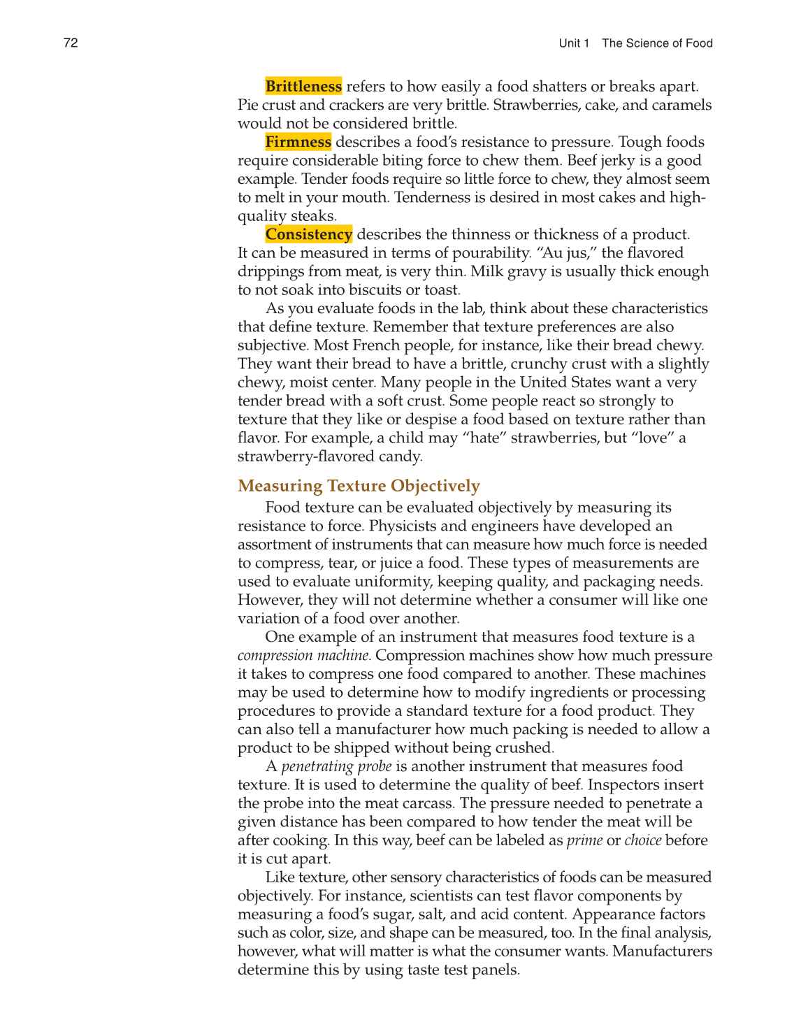 As you evaluate foods in the lab, think about these characteristics
