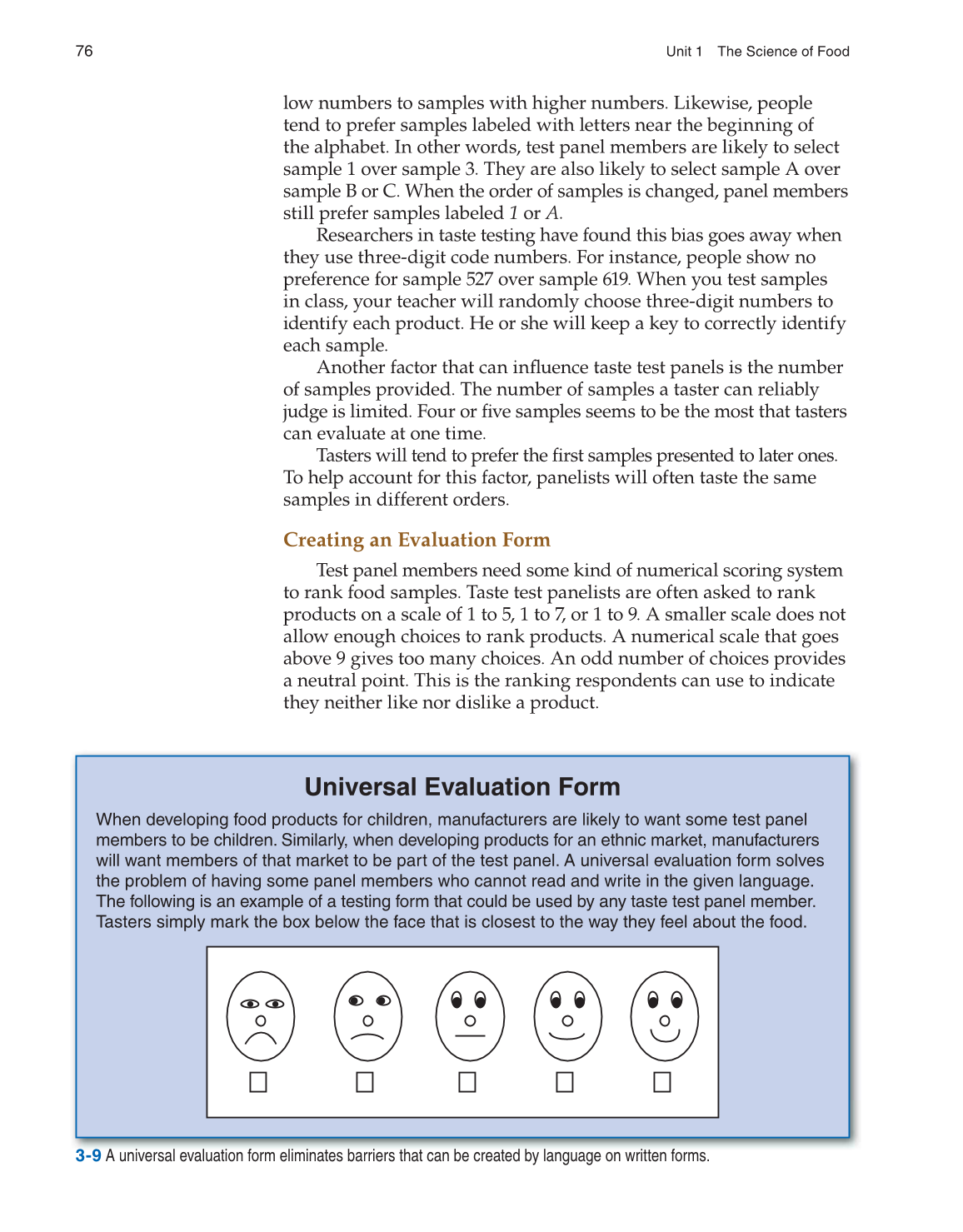 Tasters simply mark the box below the face that is closest to the way they feel about the food.