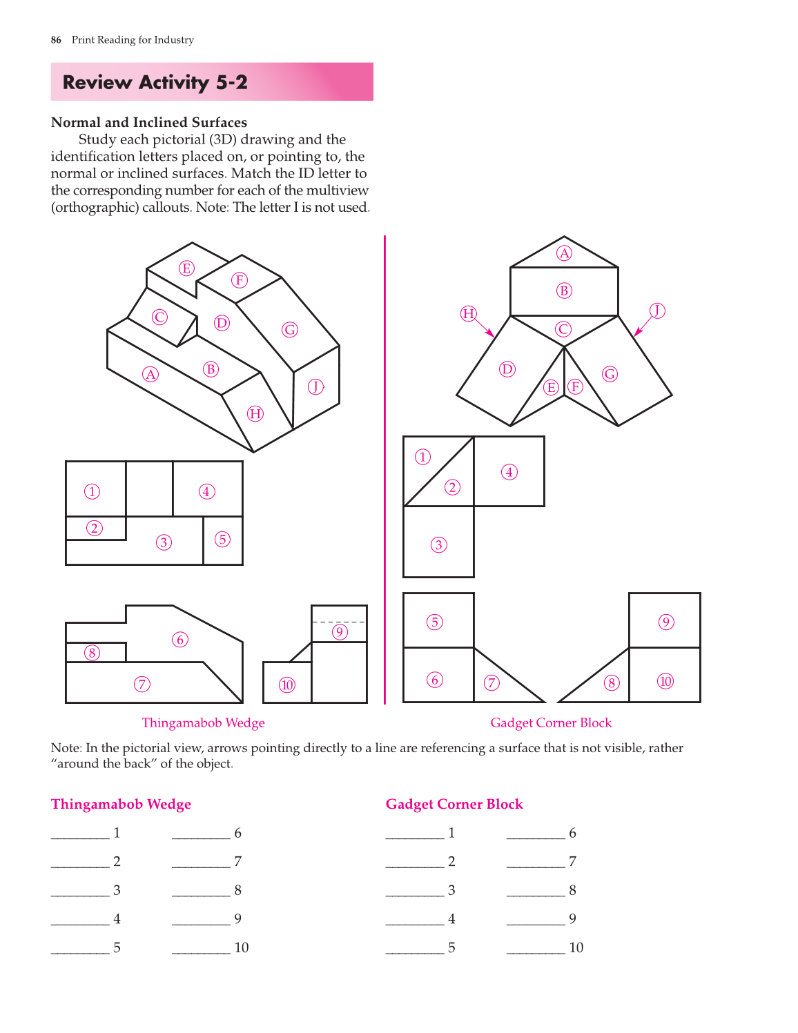 Note: In the pictorial view, arrows pointing directly to a line are referencing a surface that is not visible, rather