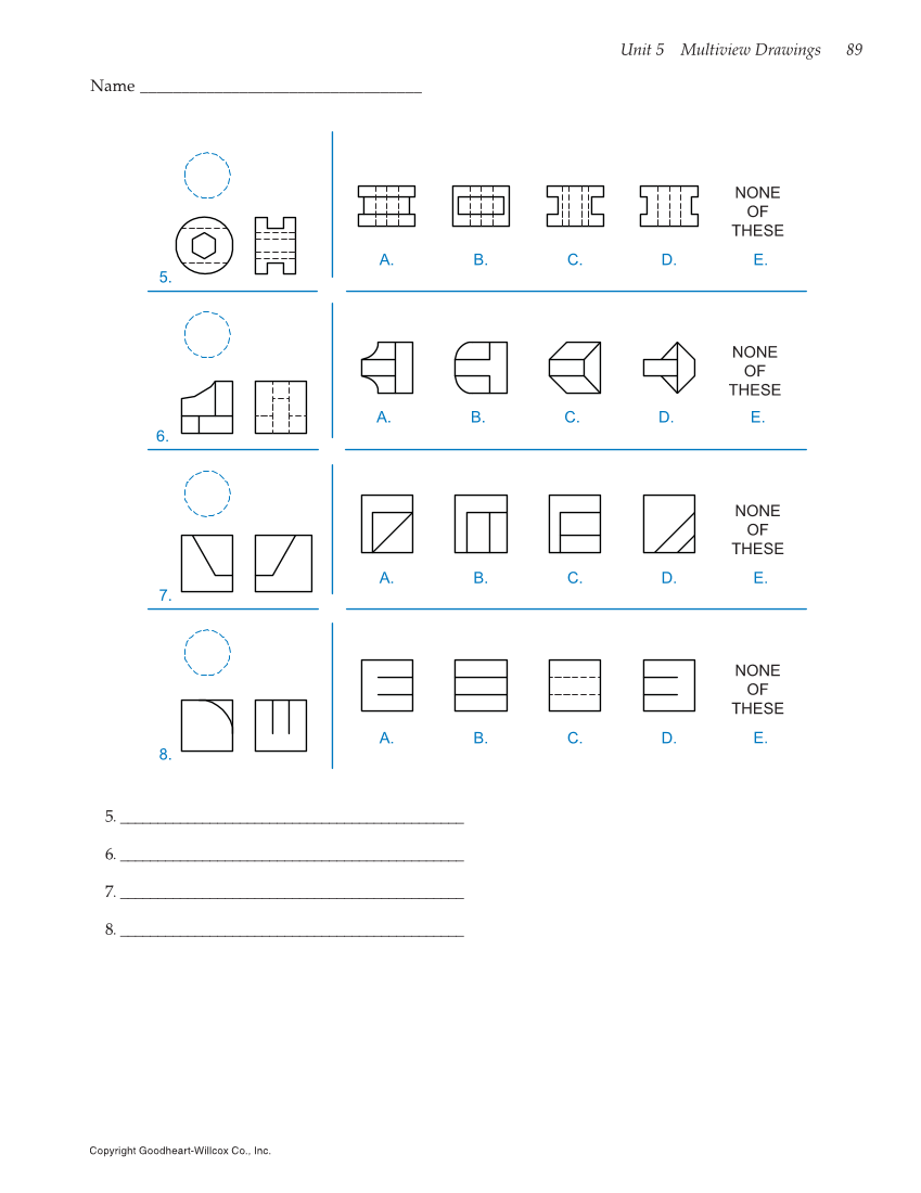 Unit 5 Multiview Drawings 89 Copyright Goodheart-Willcox Co., Inc. Name __________________________________ 5. ______________________________________________ 6. ______________________________________________ 7. ______________________________________________ 8. ______________________________________________
