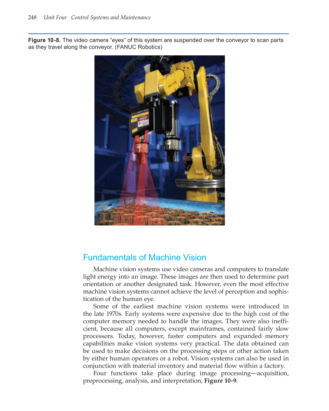 Figure 10-8. The video camera “eyes” of this system are suspended over the conveyor to scan parts