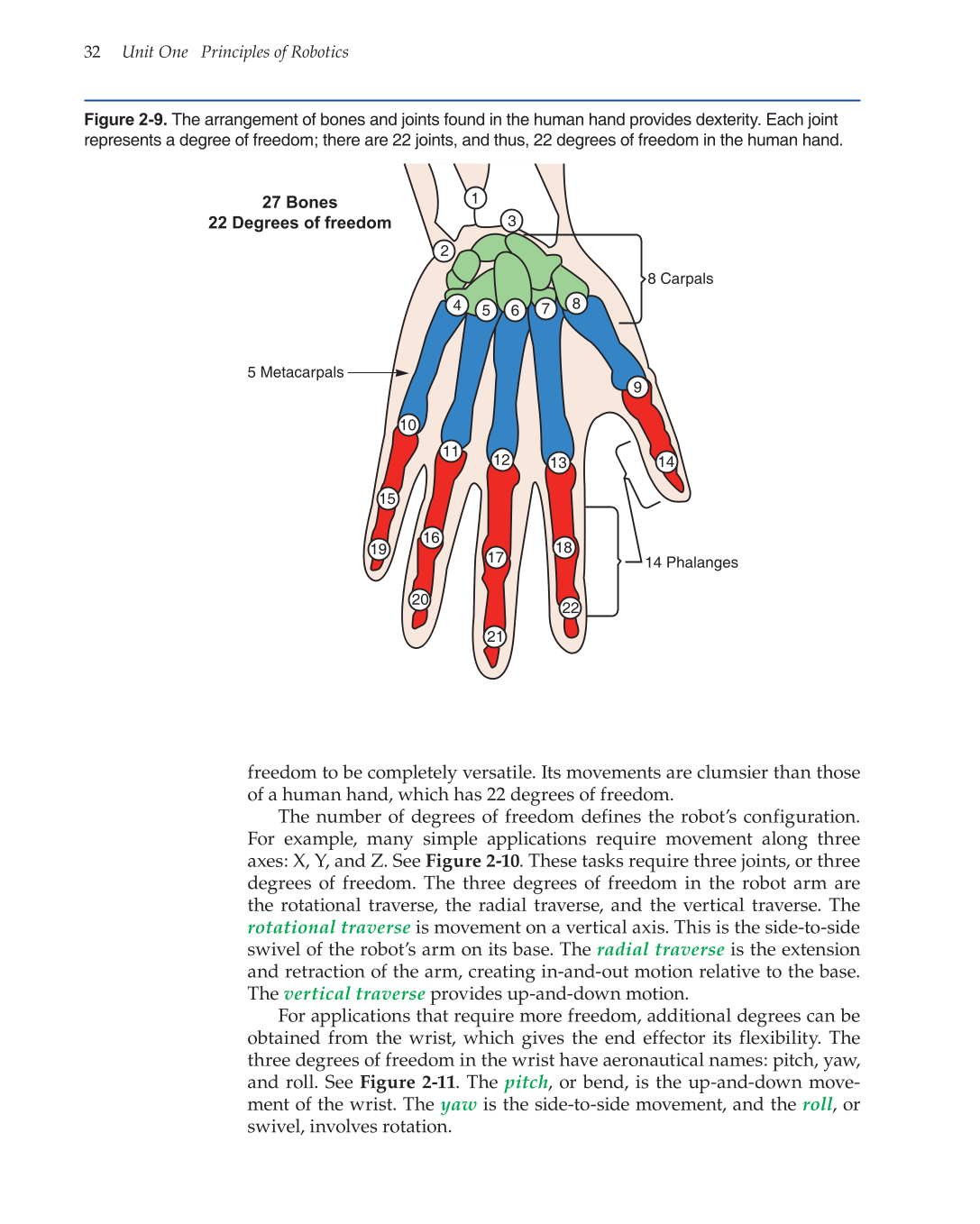 Figure 2-9. The arrangement of bones and joints found in the human hand provides dexterity. Each joint