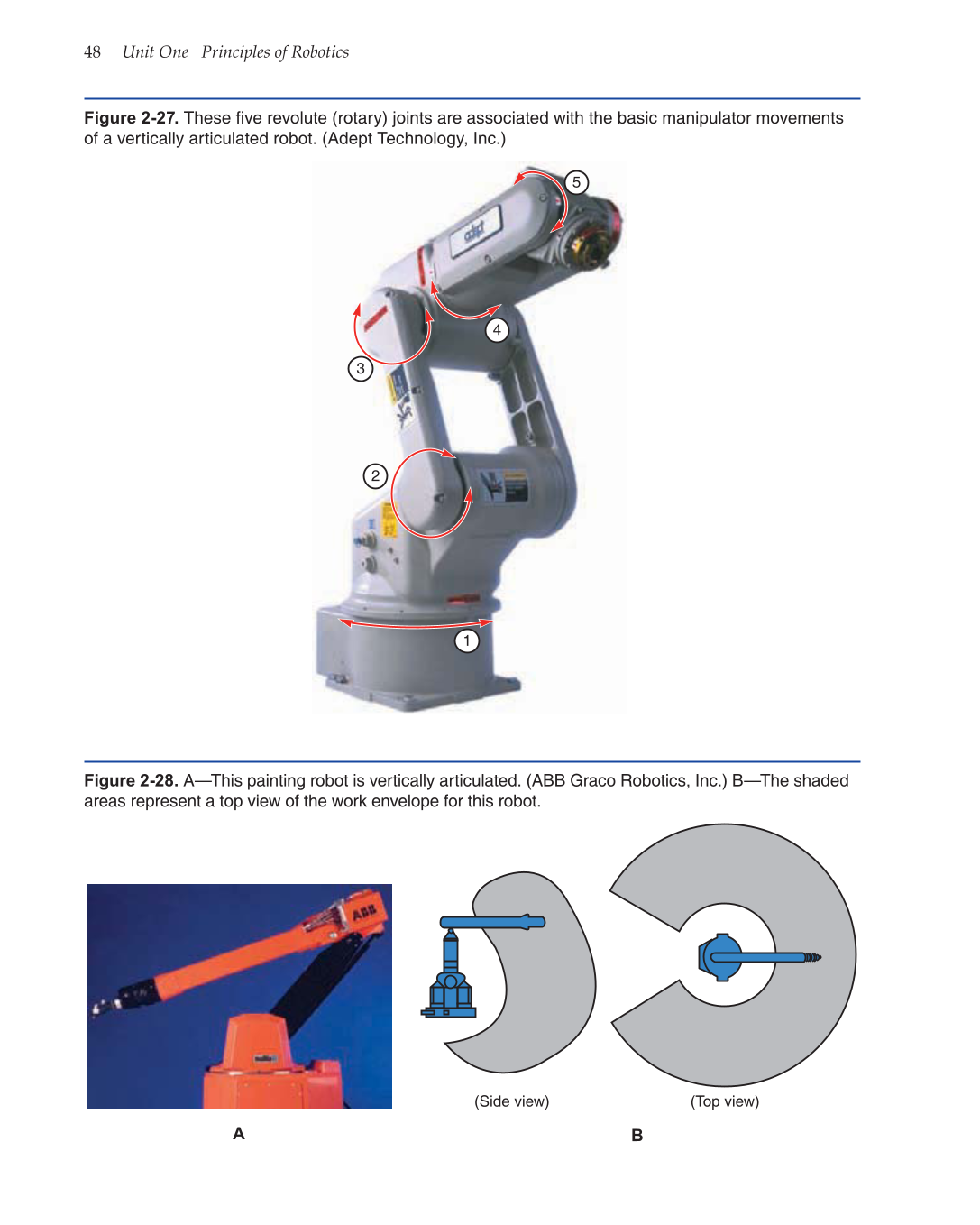 Figure 2-28. A—This painting robot is vertically articulated. (ABB Graco Robotics, Inc.) B—The shaded