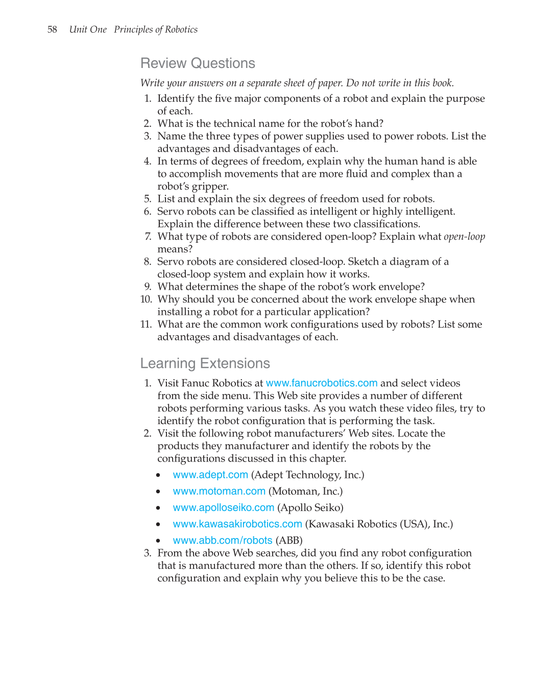2. Visit the following robot manufacturers’ Web sites. Locate the