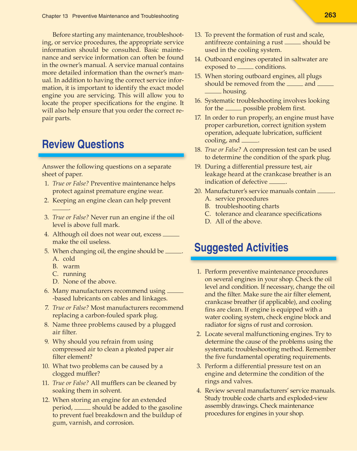 procedures for engines in your shop.