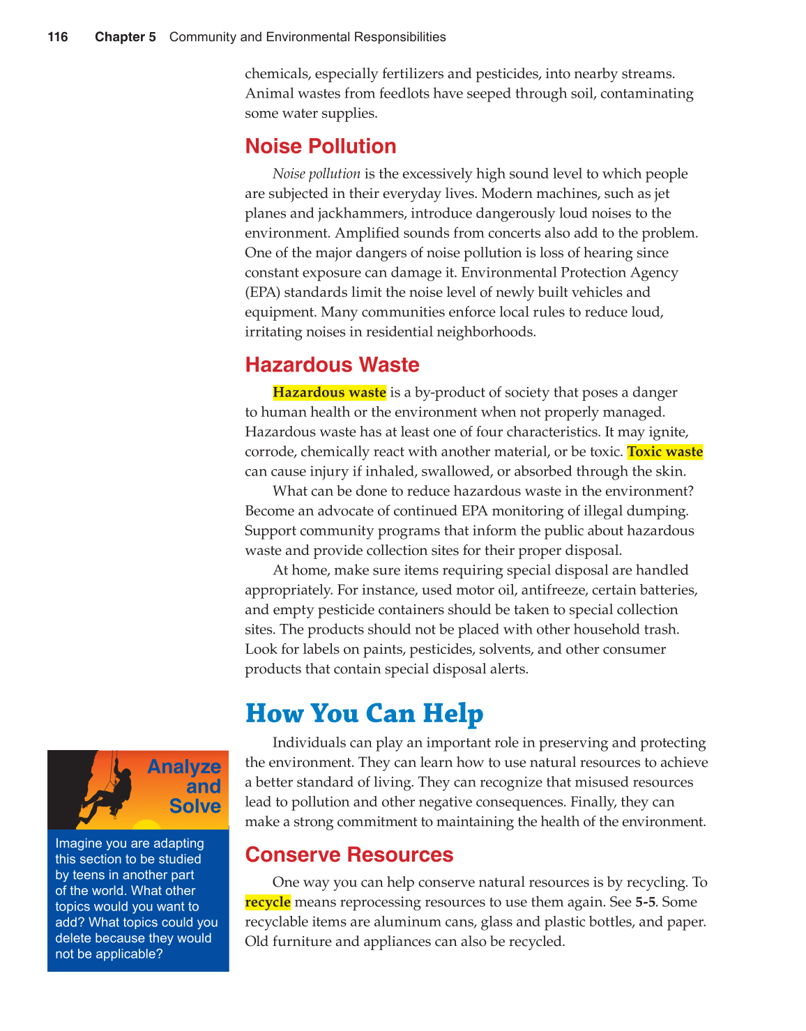 recycle means reprocessing resources to use them again. See 5-5. Some