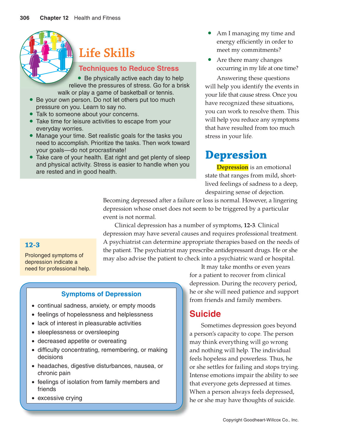 Clinical depression has a number of symptoms, 12-3. Clinical