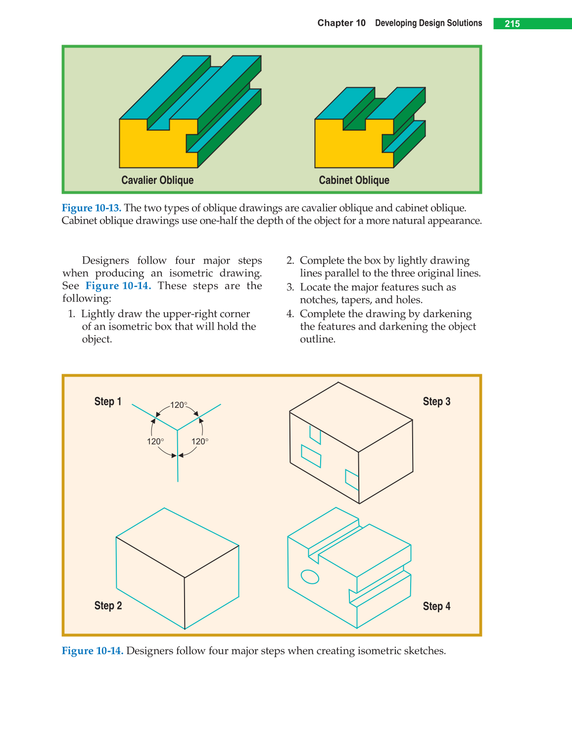 Figure 10-13. The two types of oblique drawings are cavalier oblique and cabinet oblique.