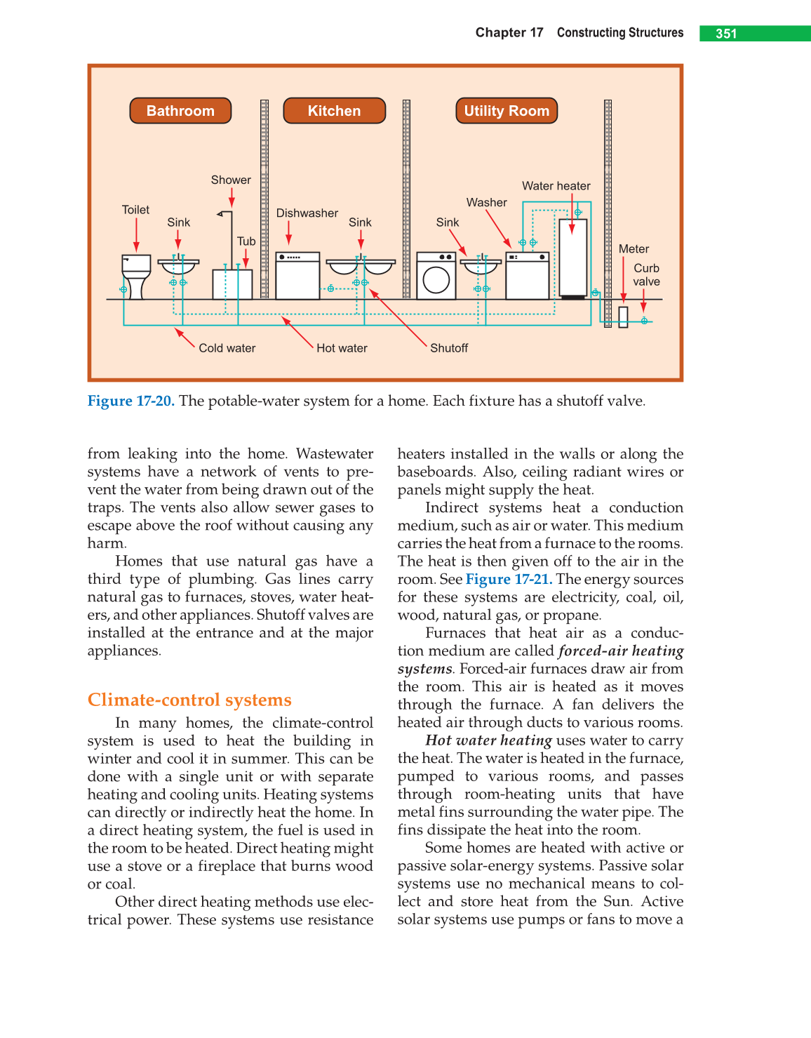 Figure 17-20. The potable-water system for a home. Each fixture has a shutoff valve.
