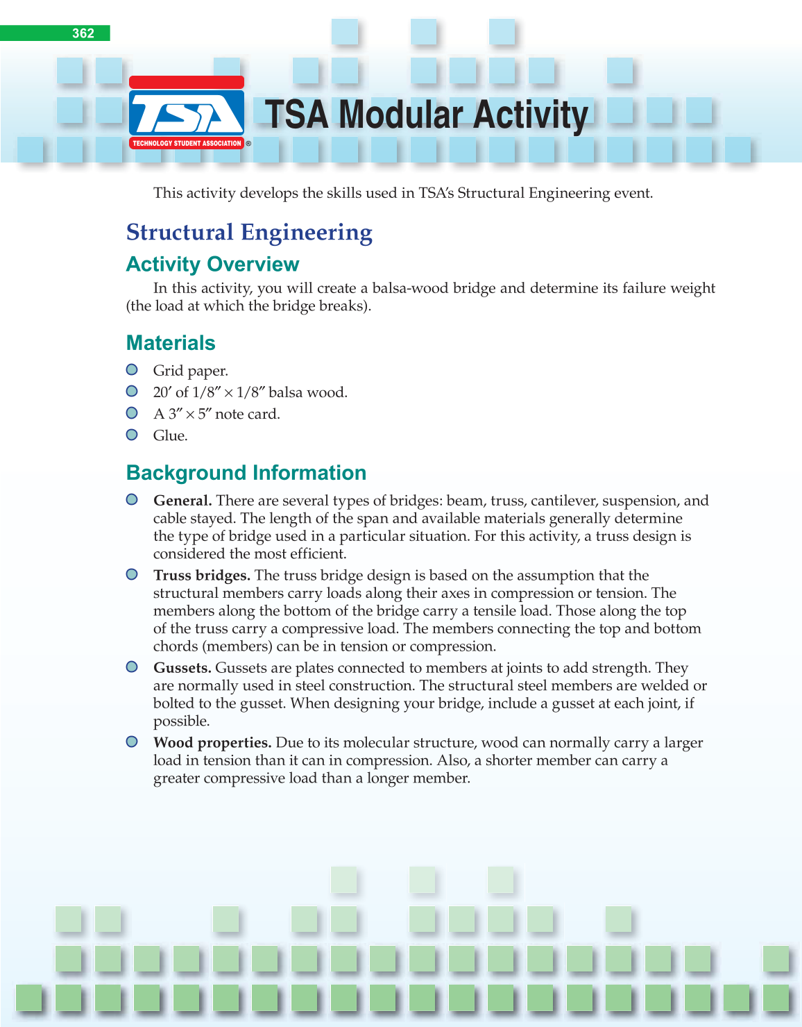 This activity develops the skills used in TSA’s Structural Engineering event.