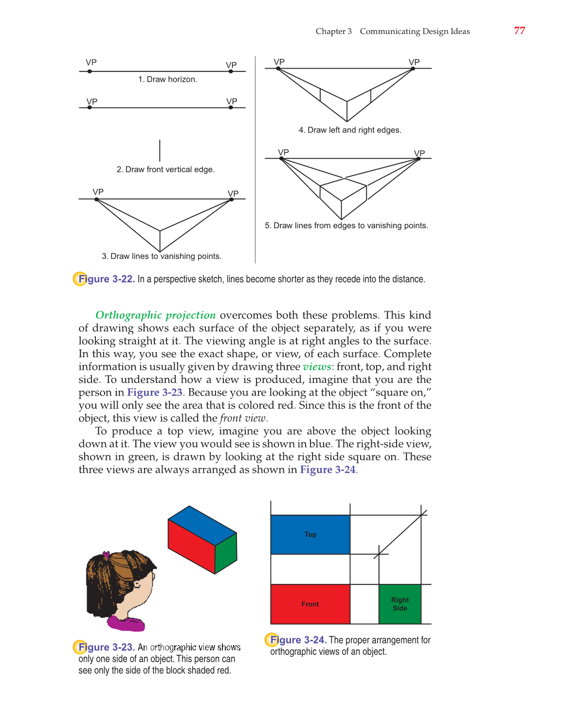 gure 3-22. In a perspective sketch, lines become shorter as they recede into the distance.