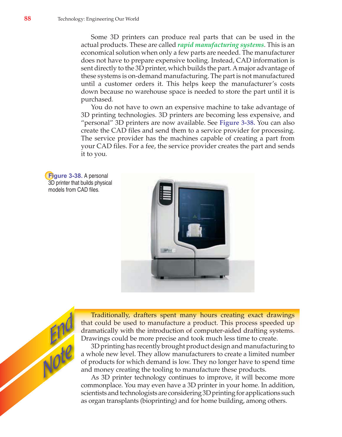 “personal” 3D printers are now available. See Figure 3-38. You can also