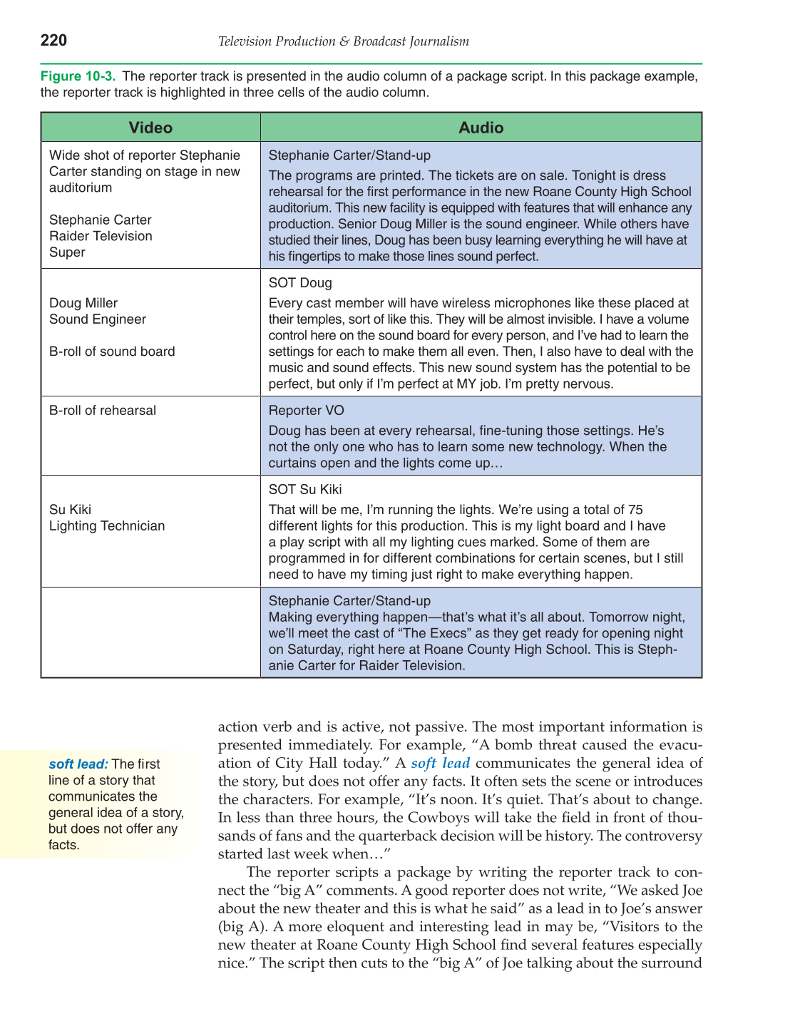 Figure 10-3. The reporter track is presented in the audio column of a package script. In this package example,