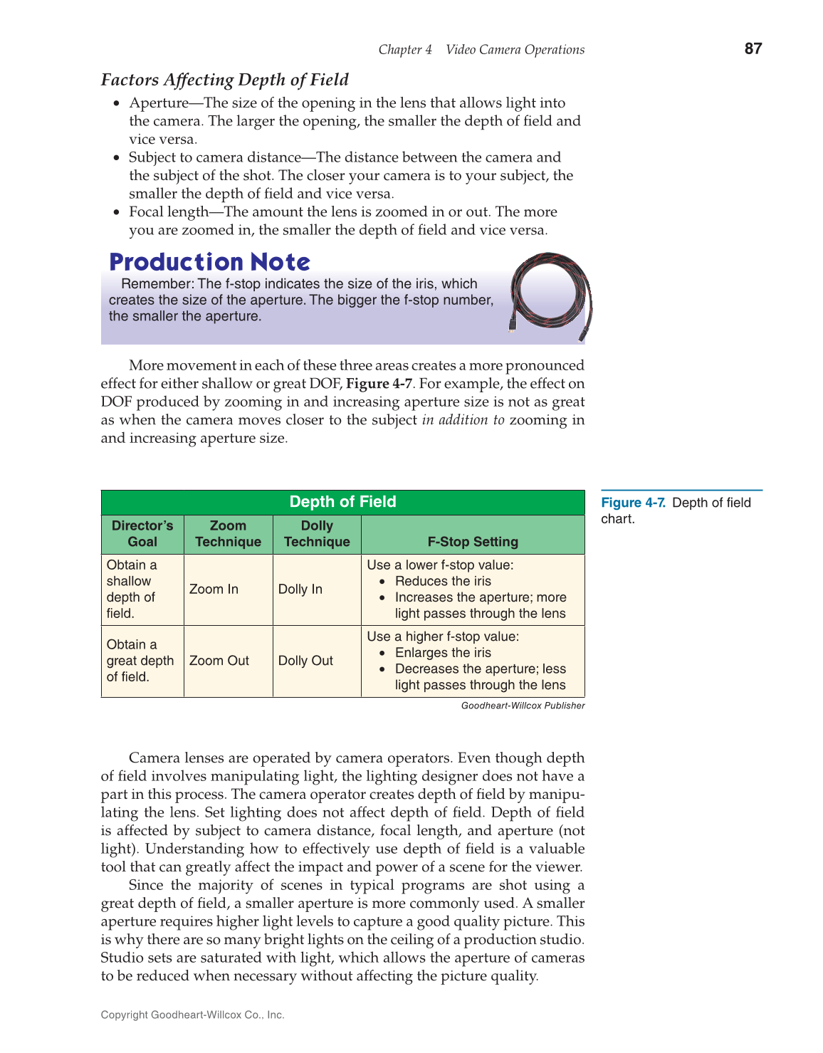 lating the lens. Set lighting does not affect depth of fi eld. Depth of fi eld