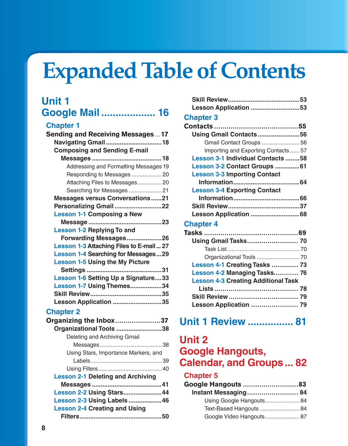 Expanded Table of Contents