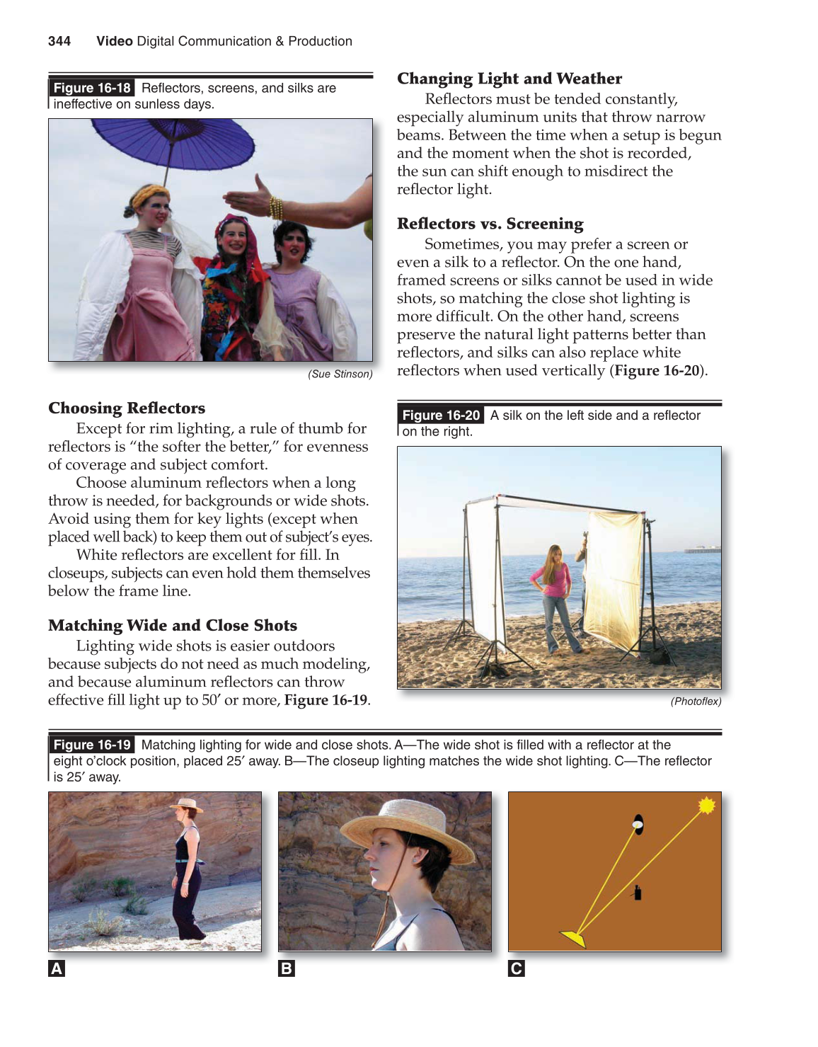 Figure 16-19 Matching lighting for wide and close shots. A—The wide shot is filled with a reflector at the