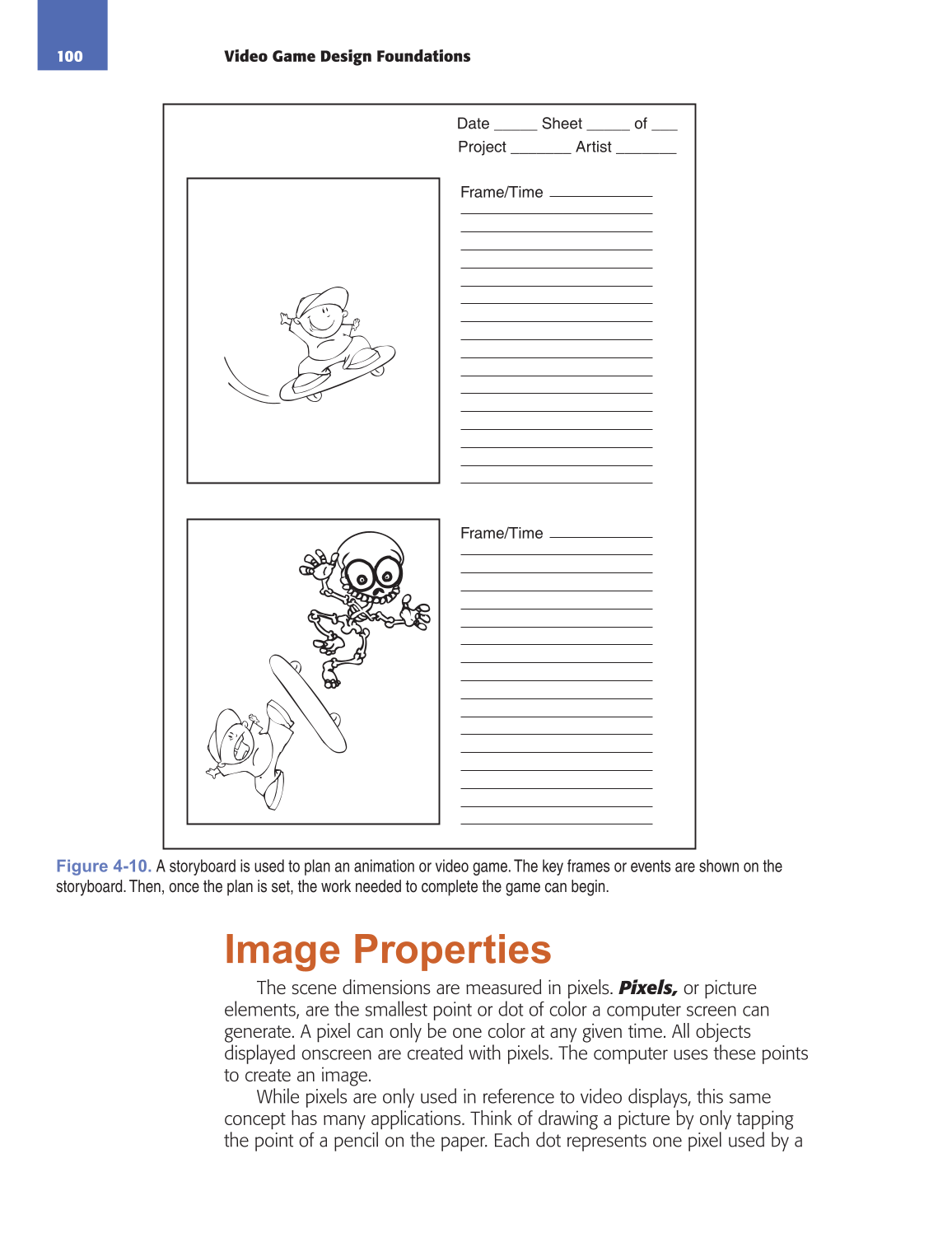 Figure 4-10. A storyboard is used to plan an animation or video game. The key frames or events are shown on the
