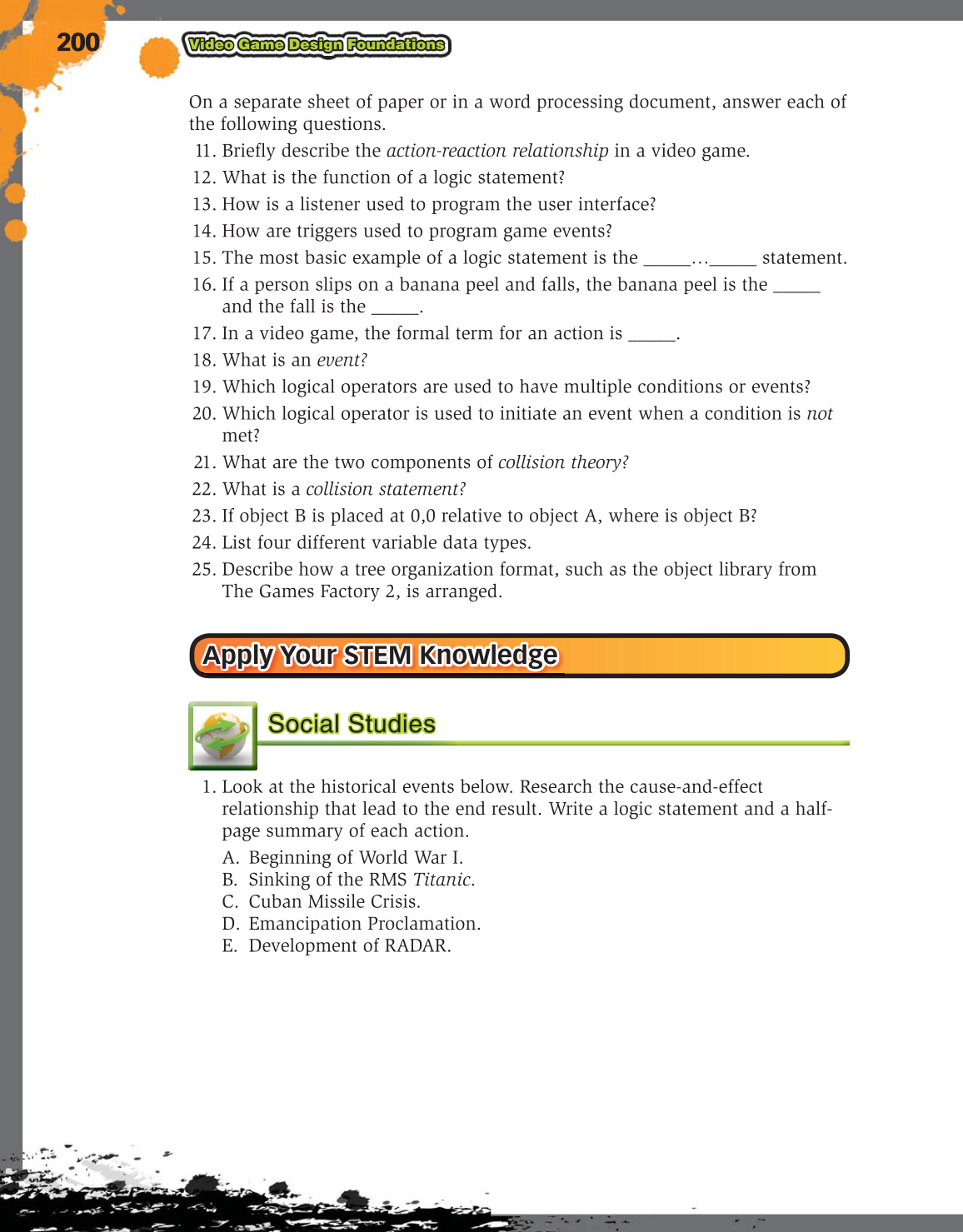 17. In a video game, the formal term for an action is _____.